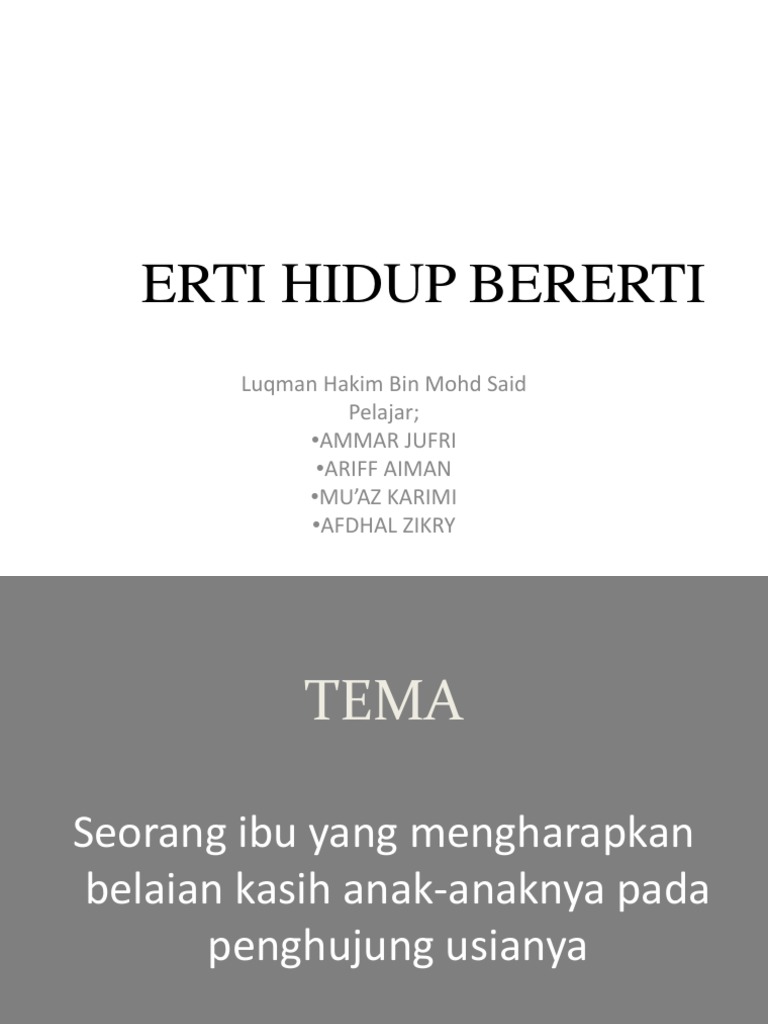 Sajak erti hidup bererti Tema kesunyian hidup yang dilalui oleh golongan warga tua yang sentiasa mendambakan kasih sayang daripada anak-anaknya serta. PERSOALAN SAJAK ERTI HIDUP BERERTI. Harapan orang tua yang tetap sayang akan anak-anaknya.
