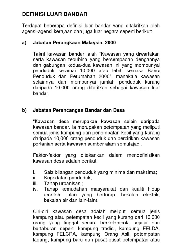 Erti luar bandar. Kesesakan jalan raya yang teruk. Ben contoh-contohsesuai dalam jawapan kamu. Kira-kira 14 peratus pengundi muda tinggal di kawasan luar bandar.