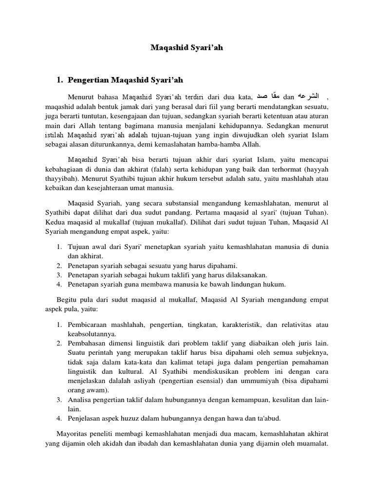 Dan jika diurai serta ingin didefinisikan ia terdiri dari dua kata yaitu Maqasid dan Syariah. Kesesuaian Nilai-Nilai Pancasila dengan Maqasid Asy-Syariah. Pendahuluan Syariat Islam adalah peraturan hidup yang datang dari Allah swt ia adalah pedoman hidup bagi seluruh umat manusia.